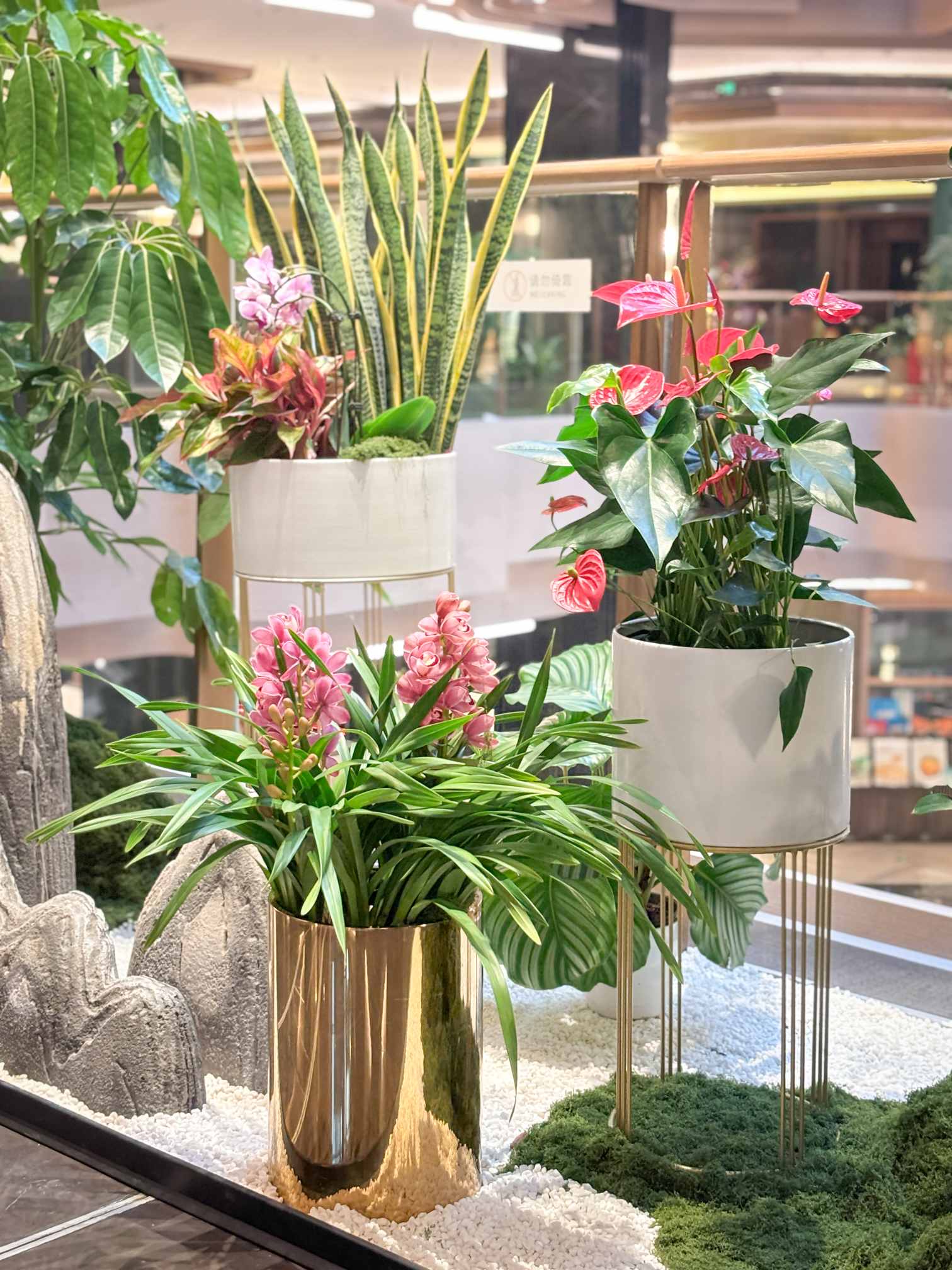普通商場(chǎng)盆栽是背景板?這處是能摸的輕奢展:摸盆器是冷的,碰葉片是暖的,鎏金反光順著葉紋滑下來,根本走不動(dòng)道!